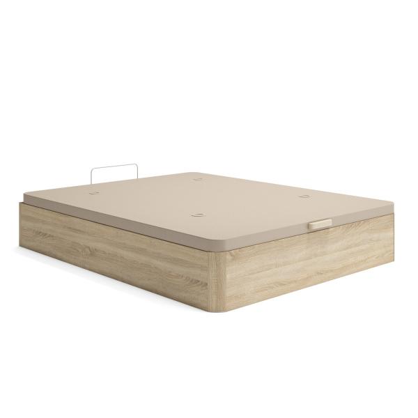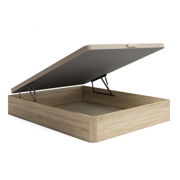 Canapé de madera Nuit color roble 135 x 190 cm. Un canapé de alta calidad al mejor precio. Estructura interna fabricada con tubo de acero y tablero perforado de 8 mm. Tapizado en tejido 3D acolchado. Tiradores de madera. Sistema de apertura prolongada con desplazamiento mediante pistones de gas. Altura total 35 cm, capacidad interior 29-30 cm.
