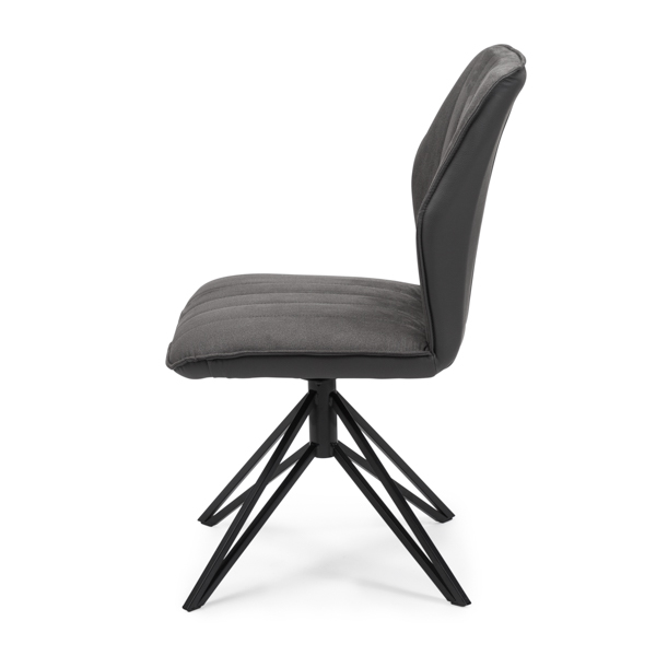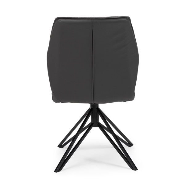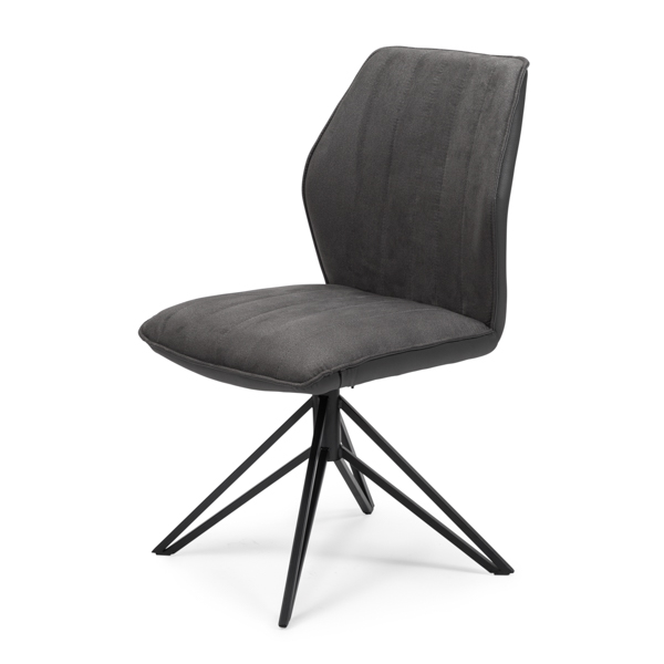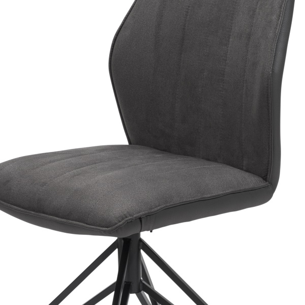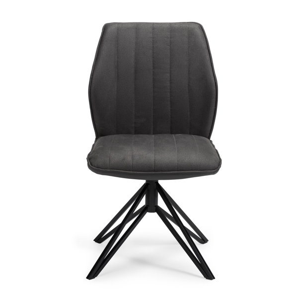 Precio pack de 2. Es necesario comprar el pack completo. Para otras cantidades, por favor, contacta con nosotros. Silla tapizada con respaldo y asiento tapizados en tela, y trasera y bajo en polipiel del mismo color. Pata metálica en acabado negro mate con mecanismo giratorio de 180º. Disponible en color marrón claro y gris oscuro. A juego con silla con brazos Olena. Se sirve en cajas de 2 unidades. Medidas: 62,5*52*93 cm.