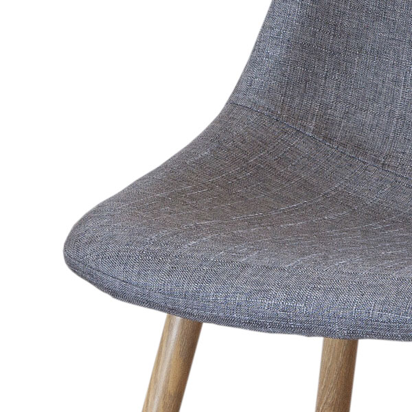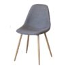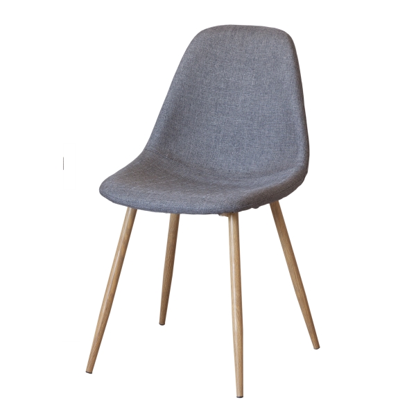 Precio pack de 4. Es necesario comprar el pack completo. Para otras cantidades, por favor, contacta con nosotros. Silla tapizada en tela beige y patas metálicas con acabado que imita a la madera. Se sirve en cajas de 4 unidades. Medidas: 45*55*84 cm.